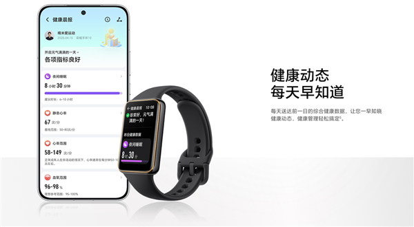 手环具备健康晨报功能,每天会推送前一日的综合健康数据,让用户一早知道健康动态。