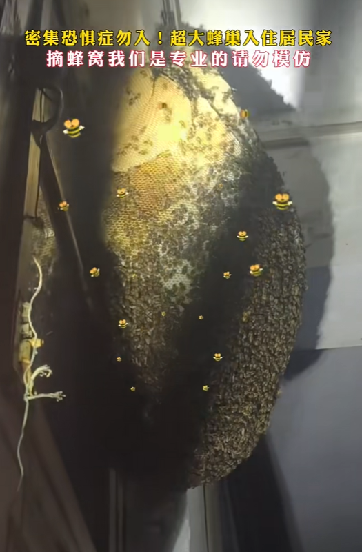 据刘先生回忆,该房屋久未使用,直至近日偶然发现竟被蜂群"占领",密密麻麻的蜂巢让人头皮发麻。