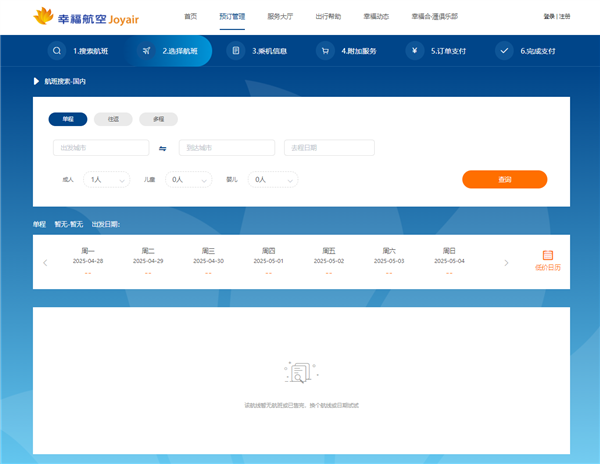 目前,幸福航空官网显示已经无票可订。
