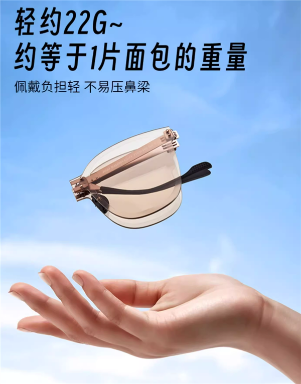 轻约 22G,约等于 1 片面包的重量,佩戴负担轻,不易压鼻梁。