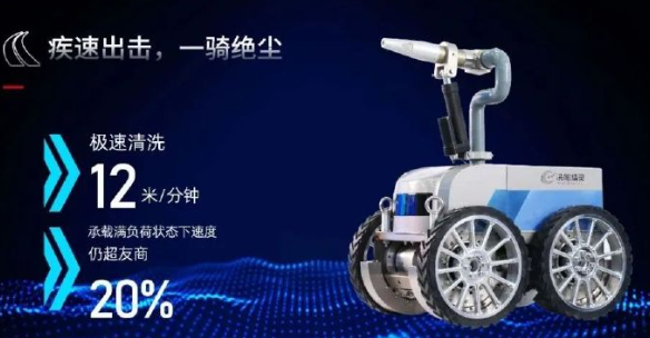同时,产品防护等级为IP67,拥有1个作业压强仅为0.8兆帕低压喷头,水流作业半径超过20m,清洗效率高、能耗低,相较于传统的消防水带洗舱设备,提高了数倍效率。尤其是清洗难度最大的上部舱壁,产品最大清洗效率达900m?/h,洗舱时间最多可节省50%。