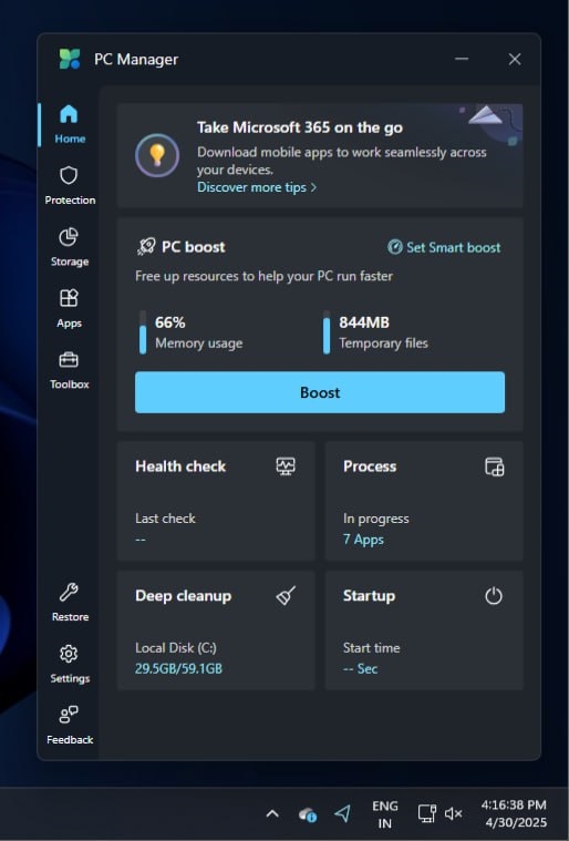微软电脑管家主要功能包括清理内存、提升性能和清理存储空间等,但如今这款工具却成为了微软推广自家服务的渠道之一