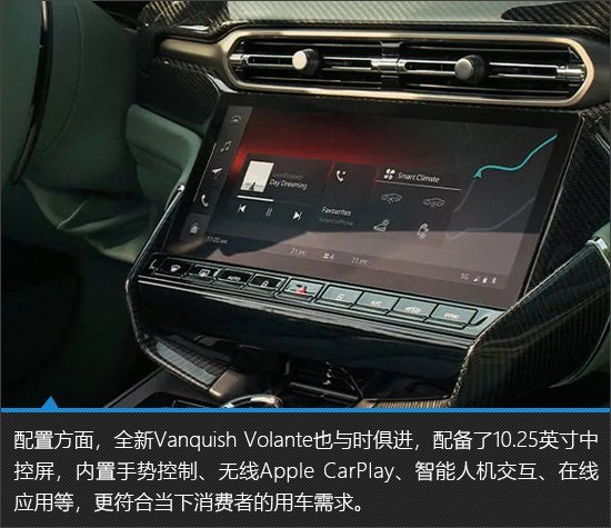 可以看到,全新Vanquish Volante的内饰保持了超豪华品牌一贯的高水准,无论是用料还是做工都让你挑不出毛病。并且还搭载了当下流行的科技配置,可以说将豪华与现代科技完美融合。