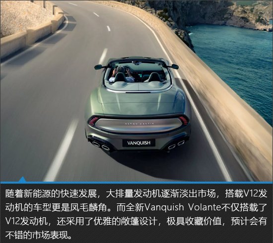 在超豪华敞篷跑车的世界里,阿斯顿·马丁Vanquish Volante以它独有的方式诠释着优雅、性能与设计美学,堪称行走的艺术品。不久前,阿斯顿·马丁带来了全新Vanquish Volante,不仅外观依然动感、迷人,还搭载了全新的V12发动机,是迄今为止速度最快、动力最强的阿斯顿·马丁量产敞篷车型。