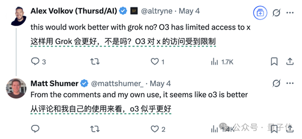 搞笑的是,虽然o3对X的访问受到限制,但大家觉得o3的表现居然比Grok更好。