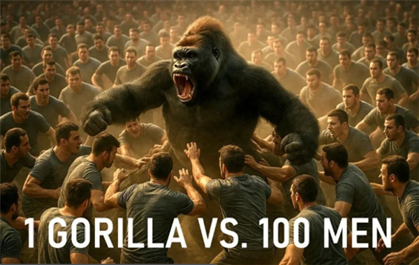 “100人VS1大猩猩”这个话题,其实早在2020年就已经出现了,当时反响平平,毕竟这是一个“思想实验”,无法真实测验,过程只能靠“想象”,结果也只能“意淫”。