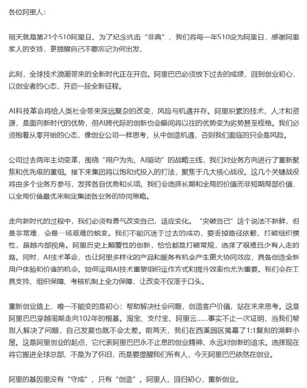 AI科技革命带来的风险与机遇并存,阿里必须放下过去的成绩,以创业者的心态,开启全新征程。