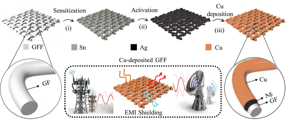 值得注意的是,该研究所使用的化学镀铜方法为生产高性能电磁干扰屏蔽材料提供了一条高效且可扩展的途径。由此产生的镀铜玻璃纤维织物有望在电子产品、通信系统、智能纺织品、高辐射环境中的防护服等多个领域中得到广泛应用。