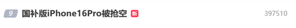 快科技5月13日消息,今日,词条#国补版iPhone16Pro被抢空#登上微博热搜,引起网友热议。