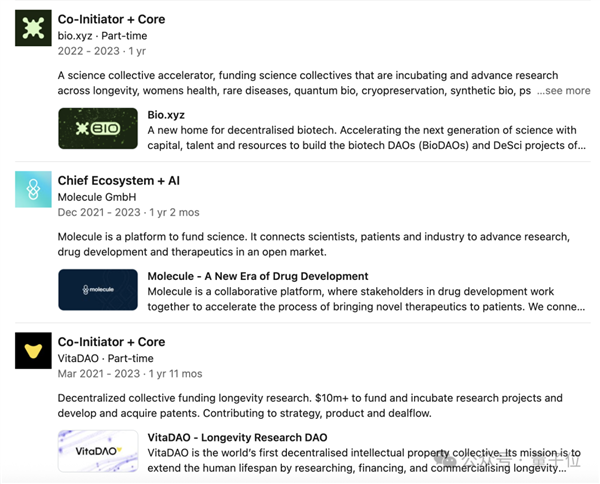 CEO Weisser担任核心成员的创业项目VitaDAO,Hagemann曾出任策略顾问。