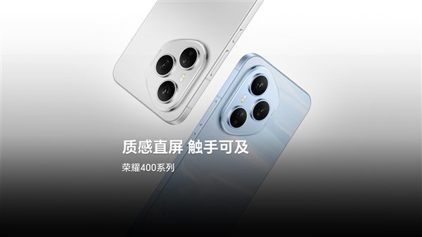 其中,荣耀400采用直边直屏方案,后置双摄为矩阵排列DECO,提供幻夜黑、揽月银、海风蓝三种配色。