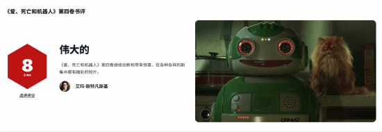 《爱,死亡和机器人》第四季依然延续着对创意动画与先锋叙事的极致呈现,其单元短剧的合集形式非但不是短板,反而成为其优势。