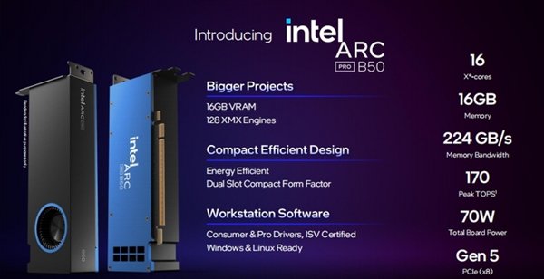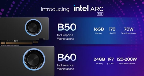5月19日,英特尔在Computex 2025上推出了为专业人士和开发者设计的全新图形处理器锐炫Pro B系列,包含锐炫Pro B60和锐炫Pro B50 GPU,搭载了为AI推理和专业工作站量身定制的配置,扩展了英特尔锐炫Pro产品系列。