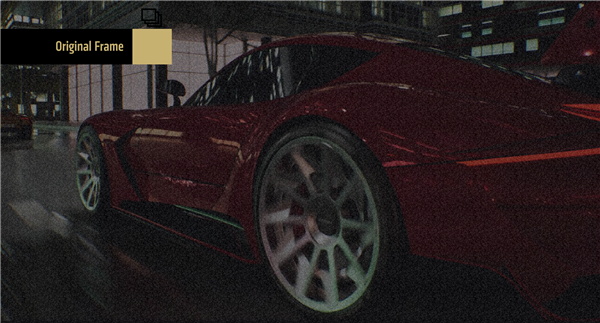 AMD特意举了一个例子,展示各项技术带来的增益。这是光追下的原始渲染帧画面。