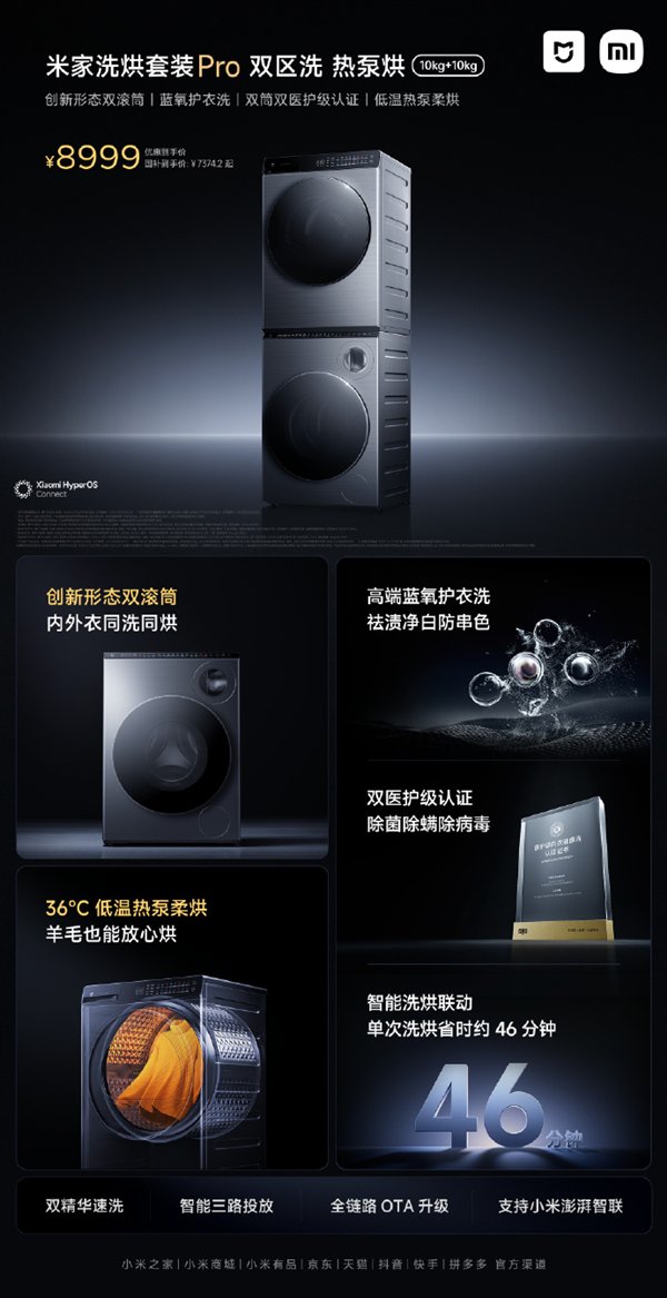 同步推出的米家洗烘套装Pro双区洗热泵烘售价8999元,为追求更高端洗护体验的用户提供了更多选择。