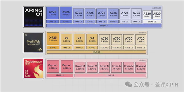 而说到 L3 缓存这里,玄戒的优势就比较明显了, O1 的L3 缓存为 16MB ,比天玑 9400 的 12MB 要大上不少,这把也是轮到小米卷发哥了。