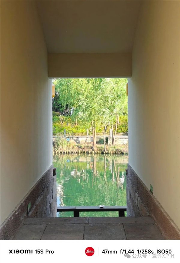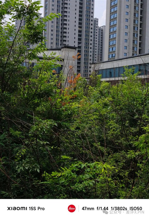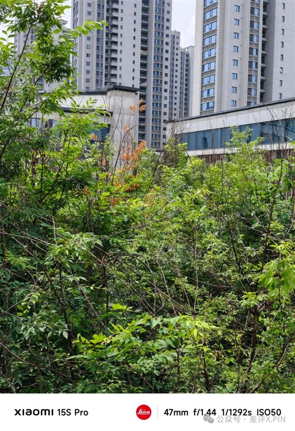 我们继续看样张,发现拉曝光这事儿还真不是偶然。在这组明暗对比比较强烈的样张里,小米 15S Pro 的树叶依旧是曝光拉的很高,树叶甚至有点糊作一团了。