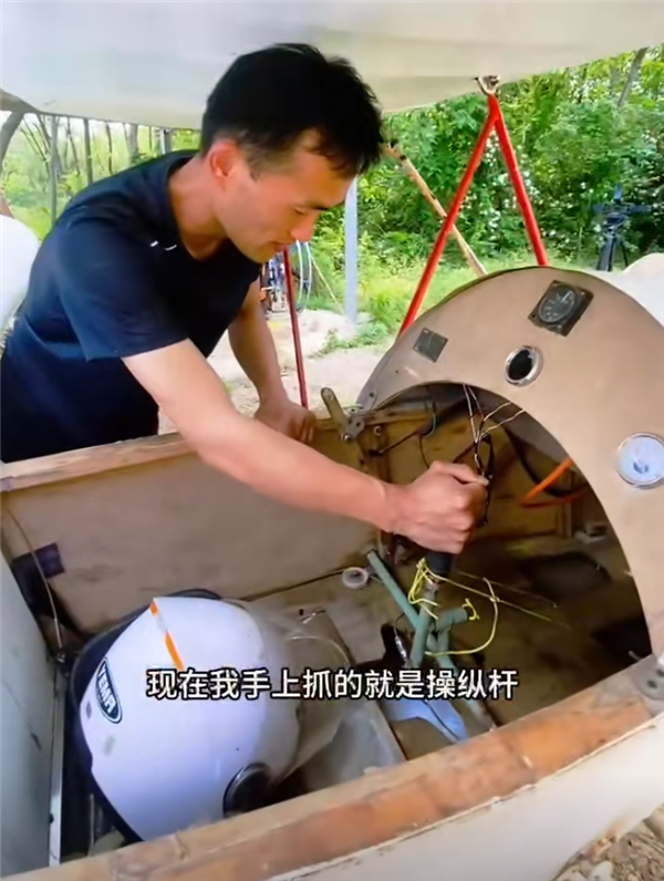 他们采用了Rotax 447发动机,是在闲鱼上淘的二手,只花了1.5万元,飞机加满油可飞行2个小时。