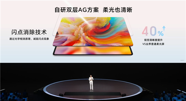 柔光版则配备了荣耀首款类纸柔光屏,通过自研双层AG方案,视觉清晰度提升40%,可消除98%环境干扰光,书写阻尼感提升50%,触摸质感提升15%,真正实现观感如纸、笔感如纸和触感如纸。