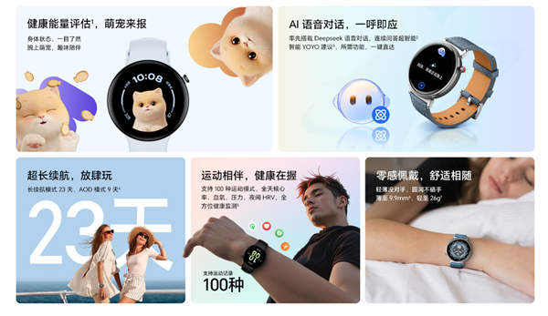 荣耀手表Fit搭载Deepseek语音对话、支持AI语音对话,首发健康能量评估,可全天候计算身体能量值,并随着白天活动和睡眠状态灵敏调整,智能提醒用户放松减压、适度运动和及时休息。