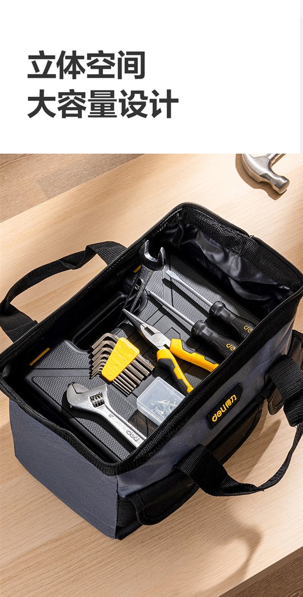 天猫得力官方旗舰店,得力工具包(13 寸加密牛津布 DL430013)日常售价为 19.9 元,下单领取 10 元优惠券,到手价为 9.9 元。另有 16~18 寸版加价可选。
