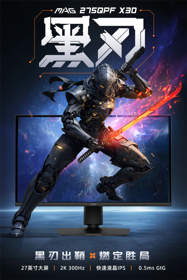 快科技5月29日消息,赶在今年的618前,微星推出了一款全新27英寸电竞显示器——MAG 275QPF X30黑刃。