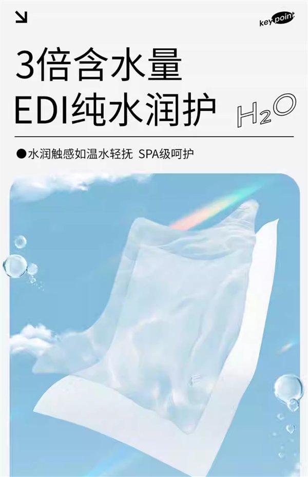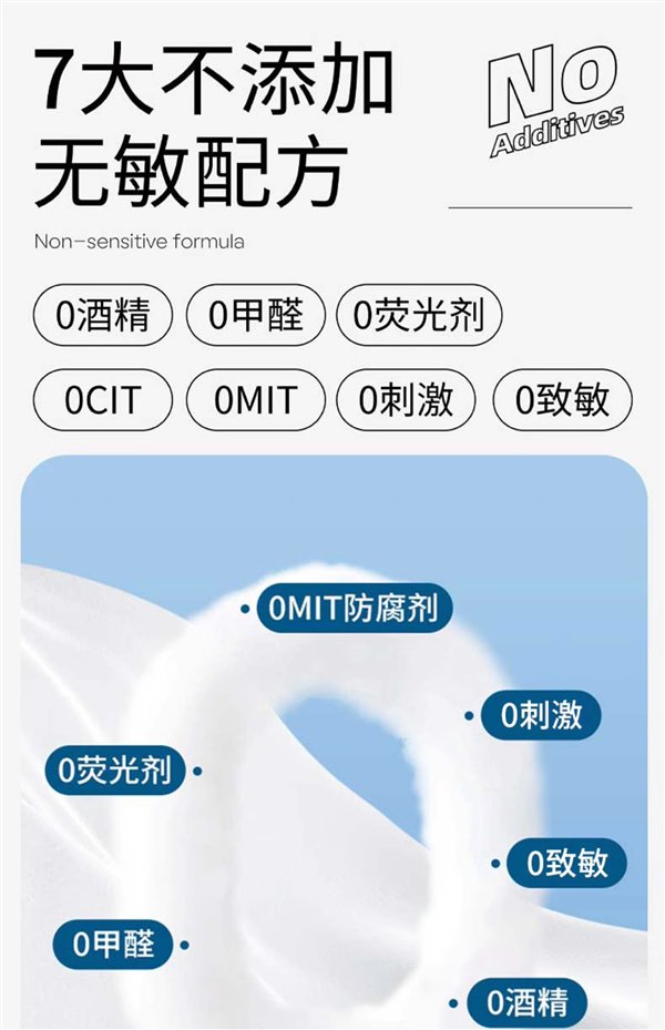 7重净化EDI超纯水,7大不添加无敏配方,弱酸性PH值更亲肤。
