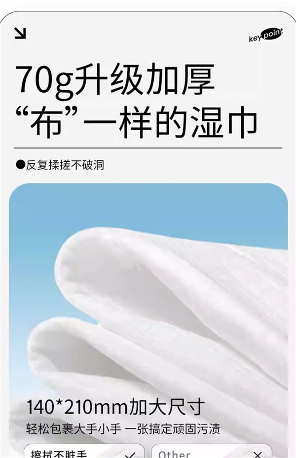 单片尺寸为 210mm*1200mm,70g 加厚无纺布不易透污,使用无需折叠更省心。