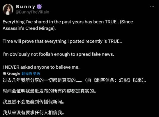 或许是因为最近频繁的爆料受到了不少质疑,BunnyTheVillain发布了一则动态进行反击,表示过去几年分享的一切都是真实的,时间会证明一切。