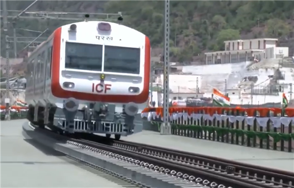 无奈之下,印度在国际上高价聘请专业工程队,2021年大桥拱桥合龙,2024年6月16日首次有列车通过,但又过了一年,直到今日才正式启用。