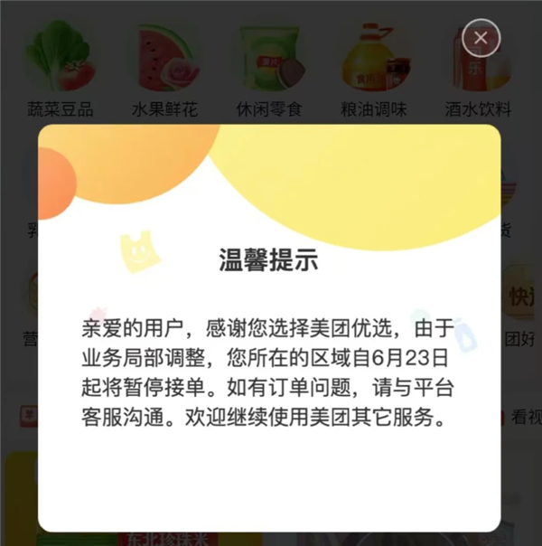 6 月底,“ 美团优选关闭 ” 冲上热搜,多地网友分享美团优选突然不能使用的页面。