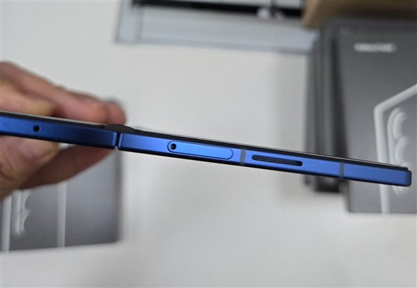 值得注意的是,根据展开的侧边视图来看,Galaxy Z Fold7机身确实非常薄,甚至中框仅比SIM卡托厚了一点点。