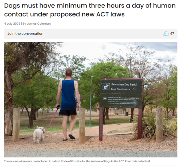 据悉,这份《澳大利亚首都领地犬只福利实务守则(草案)》目前正在首都领地政府的社区反馈网站上公开征求意见,最终版本最快将于明年初纳入法律。
