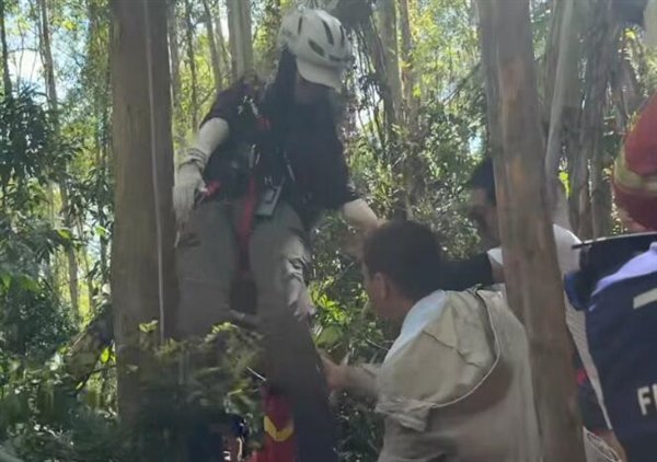 消防员立即展开救援:一组搭建安全防护网防二次伤害,另一组搭建简易绳索救援系统。