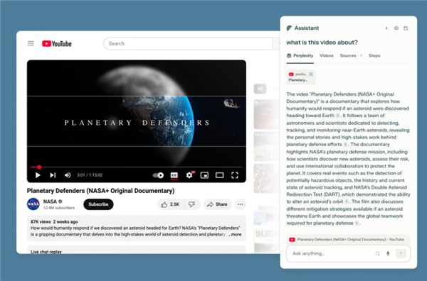 用户可以在统一的界面中提问、执行任务和进行研究,Comet助手能够比较产品、总结内容、预订会议等。