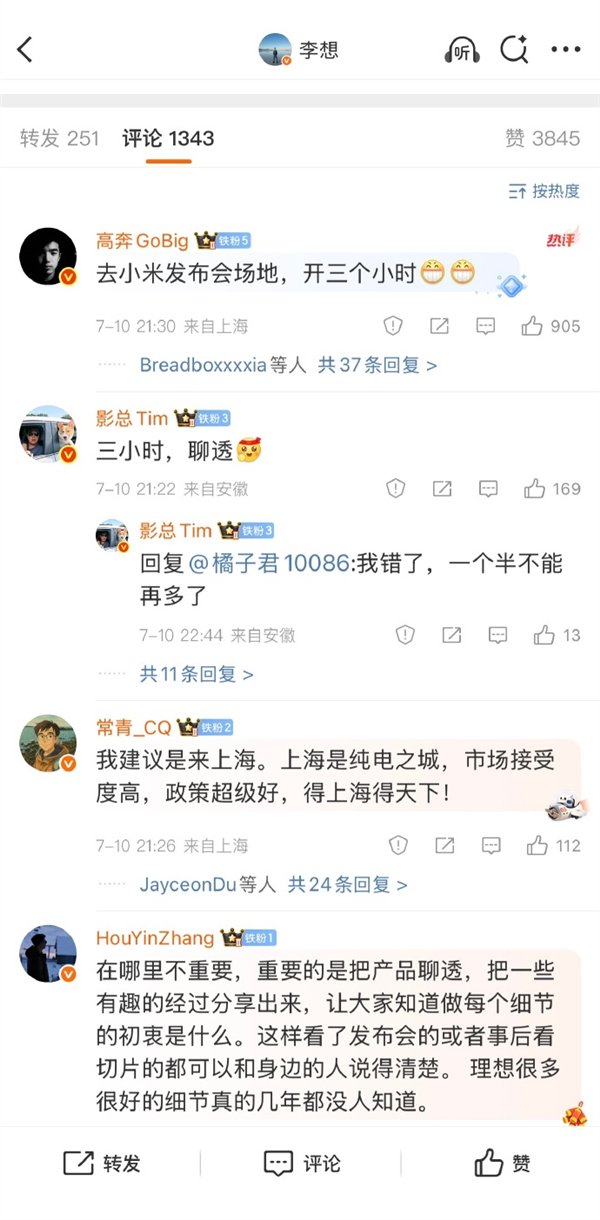 而在发布会时长的规划上,李想直言正在考虑延长时间。他注意到小米每次举办新品发布会,时长往往能达到三个小时左右,观众却依然听得津津有味。