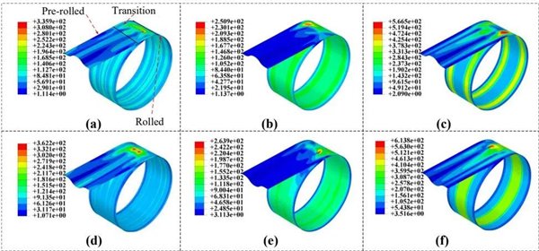 通过高精度数值模拟,研究揭示了卷收过程的力学规律:卷收过渡区为应力“热点”,最大应力集中于下层结构最外层侧弧拐点;下层应力普遍高于上层,外层材料承受应力远大于内、中层,而中层因厚度优势展现更稳定的承载性能。