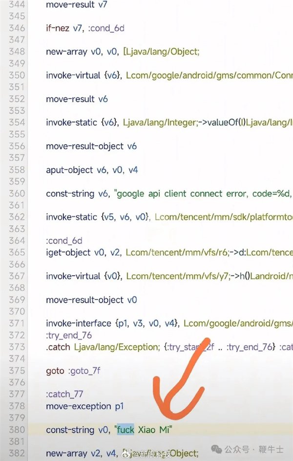 有行业人士表示,代码中针对性指向小米公司,可能涉及商业诋毁或名誉侵权。