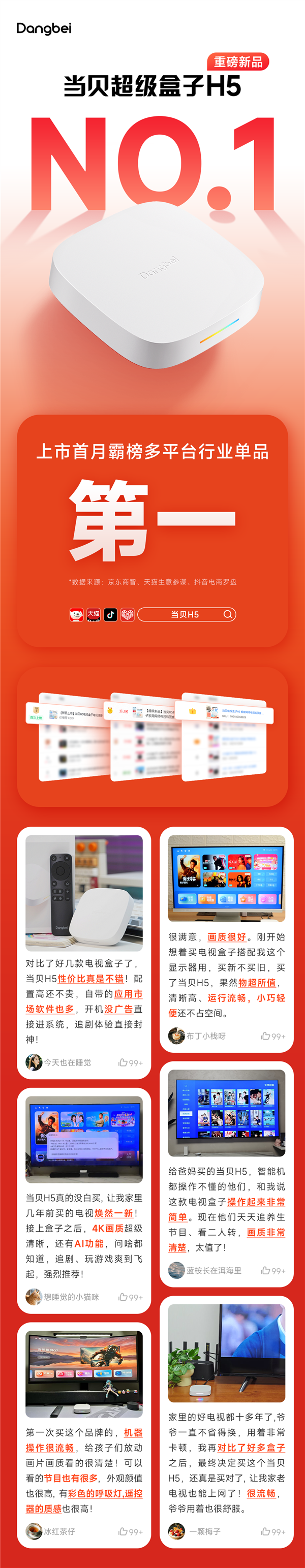 近期上市的当贝超级盒子H5凭借出色的性能,以及无开机广告等特点,上市首月就霸榜多平台行业单品第一。