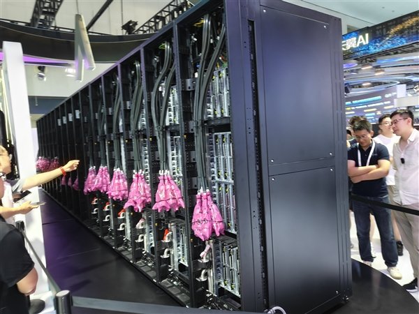 7月26日,2025世界人工智能大会(WAIC)在上海世博中心启幕,华为首次线下展出昇腾384超节点,即Atlas 900 A3 SuperPoD,该产品基于超节点架构,通过总线技术实现384个NPU之间的大带宽低时延互联,解决集群内计算、存储等各资源之间的通信瓶颈。
