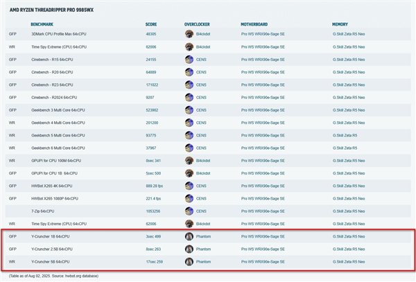 具体来说,韩国极限超频高手Phantom使用Threadripper PRO 9985WX和ASUS Pro WS WRX90E-SAGE SE 主板,将芝奇的内存超频到了DDR5-8400,而且时序也只有CL38-50-50,此频率下稳定通过了MemtestPro压力测试,可以说地狱级难度挑战了。