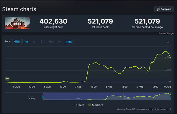 随着公开测试全面开放,《战地6》在Steam上的同时在线人数也在昨晚正式突破50万,来到521079人!
