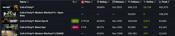 值得一提的是,这一数字甚至超越了《使命召唤》在Steam平台的所有历史成绩,包括人气极高的免费模式《使命召唤:战区》以及近几年所有测试期的最高在线人数。