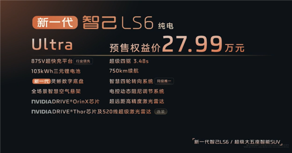快科技8月15日消息,今晚,全新智己LS6预售,共推出4款车型,售价区间20.99-27.99万元,同时官方还发布了预售权益,详情见图。
