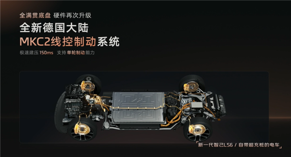 新车配备了灵蜥底盘2.0,硬件系统再次升级,配有全新德国大陆集团的MKC2线控制动系统,百公里刹停距离仅33.6米。