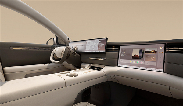 而官方介绍,一体式连屏的分辨率达到了5K,而副驾驶前方的屏也有3K,比例达到16:9,非常适合观影。