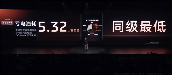 发动机高热效率带宽提升了8倍,高压缩比深度米勒循环燃烧系统热效率提升1.02%,废气能量利用率提升18%,最低亏电油耗5.32L/100km,每百公里油电综合能耗2.07L,同级最低,并且不挑油品,可加注92号汽油。