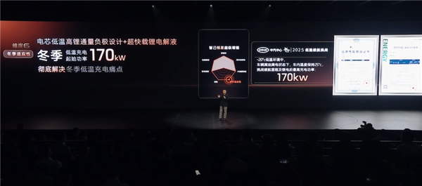除了容量大,续航长,这块电池放电功率也很强,即便是在16%低电量时,仍然可达275.5kW,这就解决了传统增程混动“亏电一条虫”的难题,即便是冬季低温充电,起步功率可达170kW。