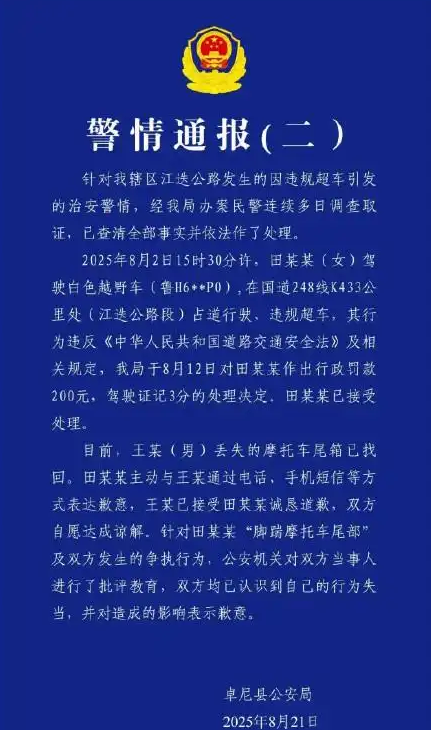 快科技8月21日消息,今日,甘肃卓尼县公安局再次针对同一起交通事件发布警情通报。