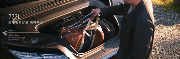 同时,全新ES8拥有远超同级的行李装载空间,前后备箱加起来的储物空间达到了777升,是同级大3排SUV的两倍,比表现最好的两个同级竞品加起来还要大129升。